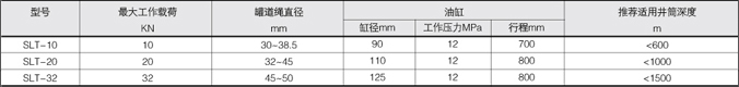 SLT型罐道繩拉緊裝置,主要應用于礦井罐道繩的固定,拉緊與張緊力調節,使罐道的張力滿足適用要求。其采用雙油缸拉緊與卡繩器配合可連續多次進行調繩,竄繩操作,與其它拉緊裝置相比,運行平穩,調繩省力。